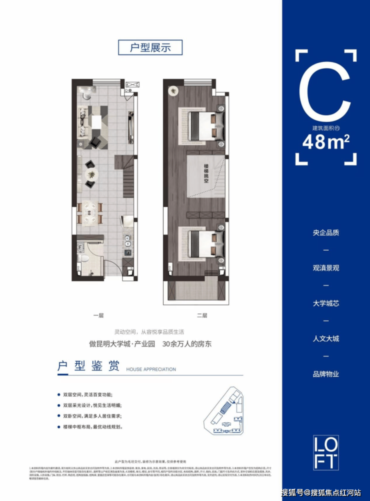 开发商为云南雨泉置业(招商局旗下),占地约60亩,总建面25.7万方,容积率5.6,绿化率10.27%。40年商业公寓产权,高层LOFT/SOHO,精装/毛坯交付,37-48㎡1-2房,适配大学生、上班族及投资客。