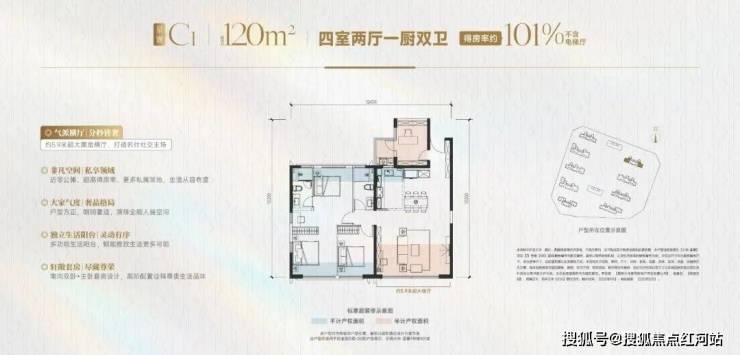 【星寰】建面约120㎡,得房率约101%,超大面宽四室两厅双卫