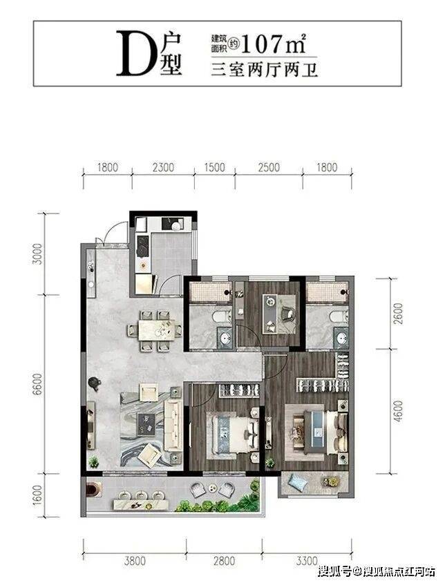 爆款一:建面约107㎡三室两厅两卫