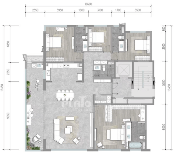 175/186㎡ :4室2厅3卫(带储藏间);