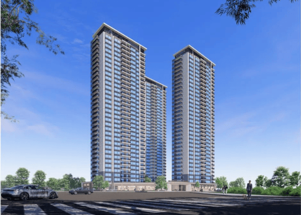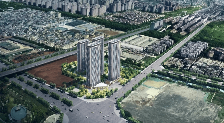 项目净用地面积为20188.91平(约30.28亩),地上建筑面积为64601.96平,地下建筑面积24846.39平,容积率3.2,建筑密度14.10%,绿地率43.58%,共规划了4栋总高29-34层的高层住宅及裙房商业。