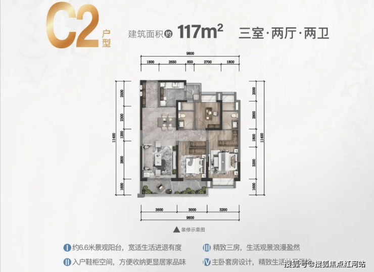 核心亮点:横厅设计,多面采光,独立玄关,双阳台;空间可灵活改造(如书房改儿童房),适合二胎家庭