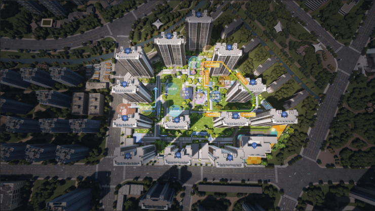 项目内部景观打造以“礼—序—融—学—享”五重归家礼序,塑造尊崇归家仪式感,以及约12000m²超大景观中庭,打造多重休闲区域,构建全生命周期生态住区。