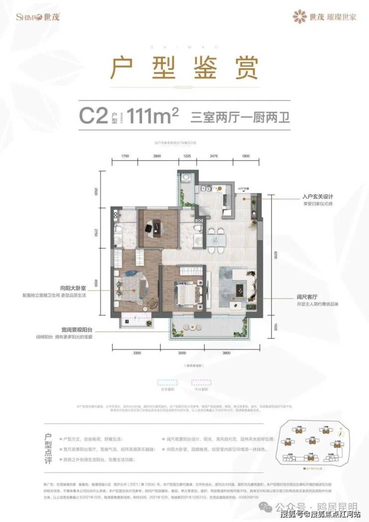 建面约113㎡刚需三房,动静分离,宜居实用