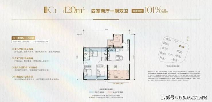 【星寰】建面约120㎡,得房率约101%,超大面宽四室两厅双卫