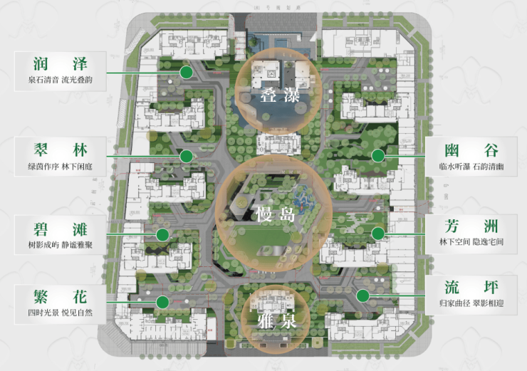 以曼谷湄南河四季酒店为蓝本,打造一环千方水景,万方绿洲。十大景观节点,七幕院空间,营造栋栋楼王步步景。