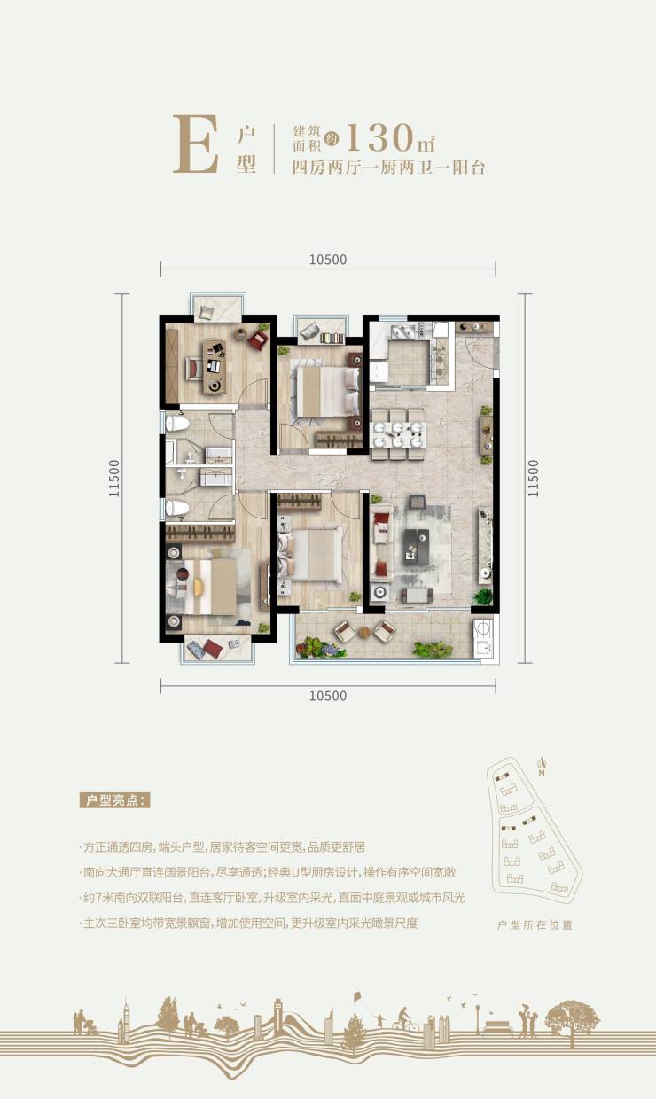 围合式布局,以宽约78米宽阔楼间距、约4300㎡超大中庭景观,打造建面约88-130㎡区域内奢享的南北通透板式人居,以精工品质革新区域人居标准。