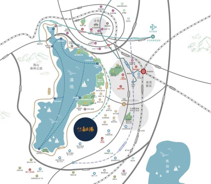 保利自在海坐落于滇池南岸的核心区域,占据着得天独厚的地理位置。滇池作为云南最大的淡水湖,不仅拥有壮丽的湖光山色,更承载着丰富的生态资源与深厚的历史文化底蕴。项目紧邻滇池,让业主推窗即见浩渺滇池风光,享受着清新的湖风与充足的负氧离子,仿佛与大自然融为一体。周边环绕着多个生态公园,如古滇湿地公园、南滇池国家湿地公园等,形成了一个天然的生态屏障,为业主提供了亲近自然、休闲漫步的绝佳去处。