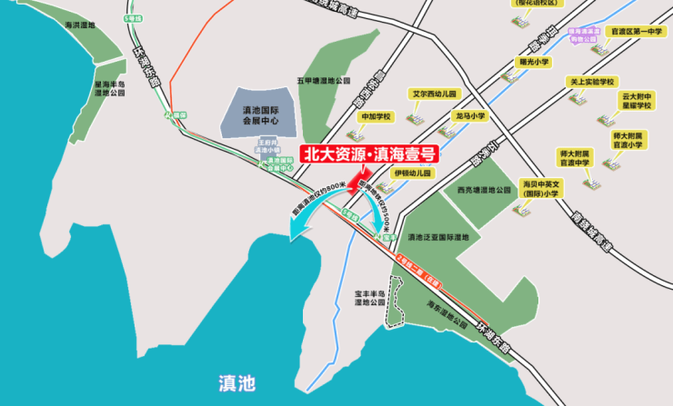 北大资源滇海壹号雄踞滇池三个半岛核心区域,占据昆明环湖生态带最后的珍贵土地,与滇池仅咫尺之遥,拥有无可比拟的一线滇池景观资源 。推窗即见滇池浩渺碧波,周边海东湿地、王官湿地等多个生态湿地公园环绕,宛如天然的绿色屏障,负氧离子充沛,每一次呼吸都沁人心脾,在这里,您可以尽情享受大自然的馈赠,感受四季更迭的美景,让身心沉浸在滇池的诗意与浪漫之中。