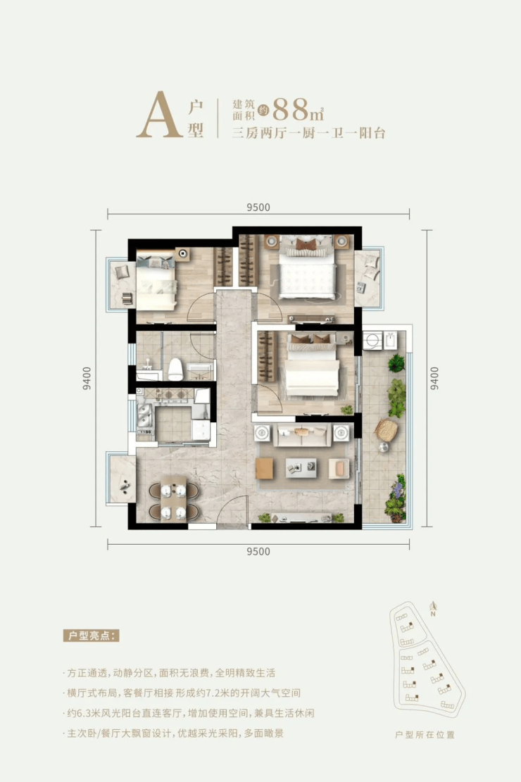 所有户型均方正布局,双面甚至三面采光。整个房子没有暗室。它还配备了6米以上的阳台和更多的飘窗。大厅。套房式主卧室。所有方卧室都可以轻松满足生活空间,无论是三代同堂还是二胎家庭。
