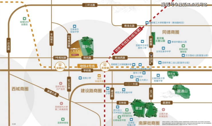 项目周边有云大医院、昆医附二院等多家三甲医院在侧,全方位守护健康。周边有西城时代、建设路、南屏街、恒隆广场等繁华商圈环绕,咫尺全系生活坐标。