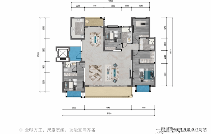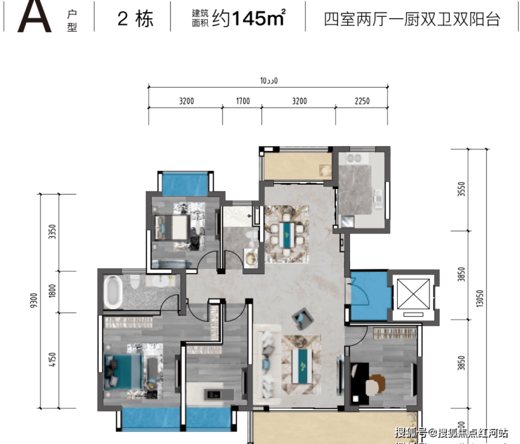 B户型 建面约185㎡ 四室两厅一厨三卫双阳台