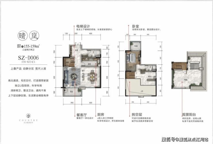 主推155-177㎡半山叠墅,涵盖下叠、中叠、上叠三种户型,高赠送率、高实得面积,适配高端改善家庭。下叠带55-95㎡私家花园,可打造庭院休闲、亲子互动空间;中叠带观景露台,揽山景入怀;上叠带45-60㎡屋顶花园,私享星空美景,所有户型功能分区合理,动静分离,尽显墅级舒居质感。