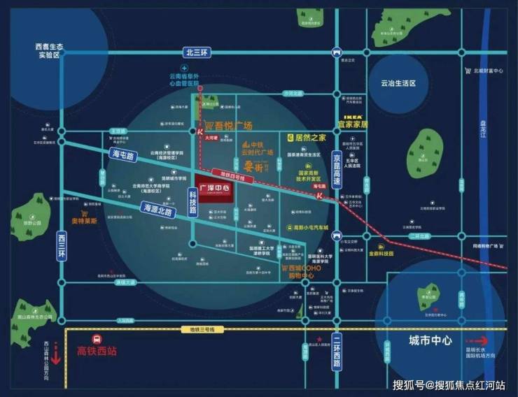 板块拥有“三横三纵”的交通路网体系,5分钟内即可到达西三环、西二环,通过二环及三环两大城市级核心干道,瞬时通达全城。同时,项目邻近地铁4号线双地铁站,大河埂站、海屯路站距离仅1公里左右,双地铁站点可满足日常出行需求,快速连接昆明各区域。便捷的立体交通路网,不仅方便居民日常通勤,也为企业办公提供了高效的交通保障,进一步提升板块的发展潜力。