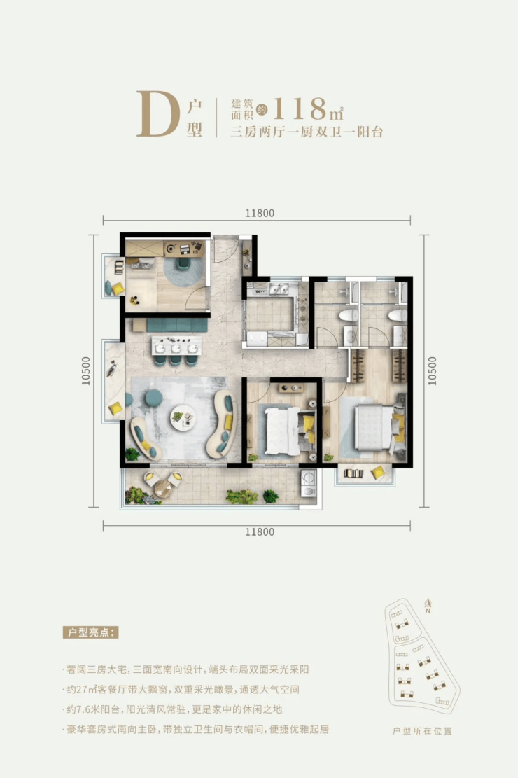 所有户型均方正布局,双面甚至三面采光。整个房子没有暗室。它还配备了6米以上的阳台和更多的飘窗。大厅。套房式主卧室。所有方卧室都可以轻松满足生活空间,无论是三代同堂还是二胎家庭。