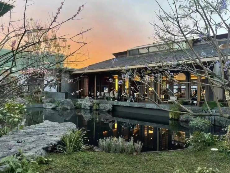 山水观园,由清华大学建筑学院景观学系主任朱育帆教授精心设计,借鉴楠园隔水对山布局,展现江南园林的经典美学。园内假山障景,主厅取景,营造出丰富的视觉对景与借景之美。步移景异,情境交融,彰显中式传统园林的核心理念。