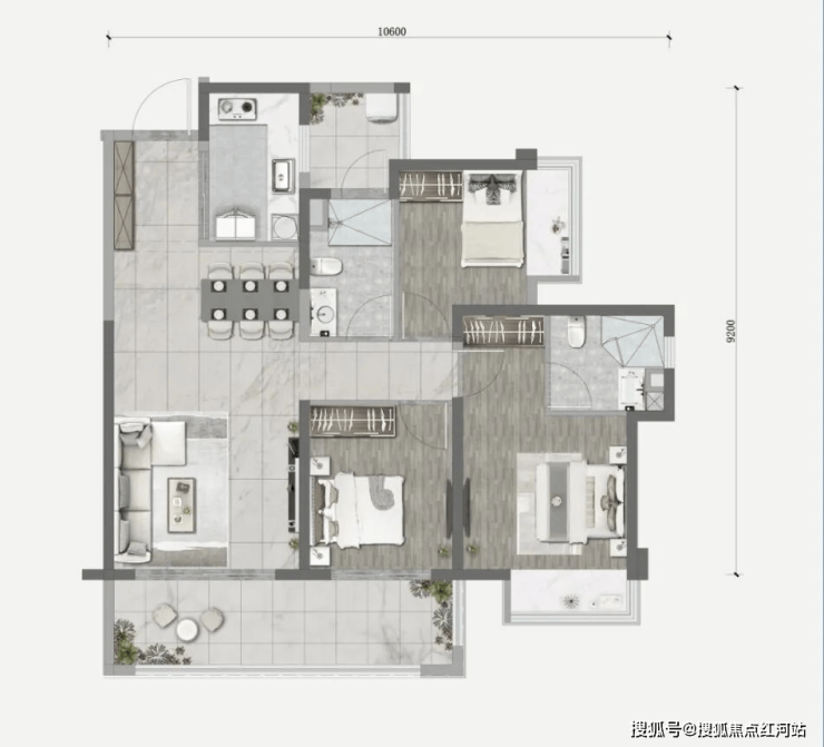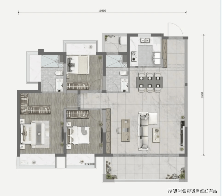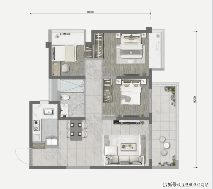 核心亮点:南向大阳台,主卧套房(独立卫浴 + 飘窗);双卫分离,家人使用不冲突;全明格局,储物空间充足,适配二胎 / 三代同堂。