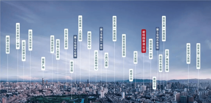 三甲医疗林立 全优医疗资源覆盖——云大医院、昆医大第二附属医院、老昆华医院等三甲医院林立,护航健康、安琪儿医院近在咫尺;