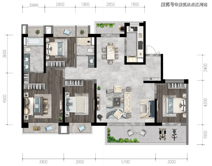 B2户型:建面约143㎡,三室两厅两卫(可改造为四室两厅两卫)