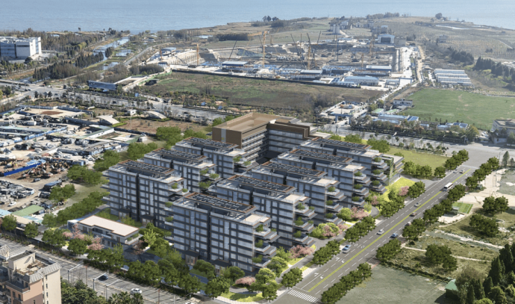 项目占地37亩,总建面7.4万㎡,容积率1.5,建筑密度30.85%,绿地率33%;住宅层高7F(住宅建筑高23.8-24M),为1T1户产品,户型为190㎡-230㎡(高赠送),且社区内带恒温泳池。