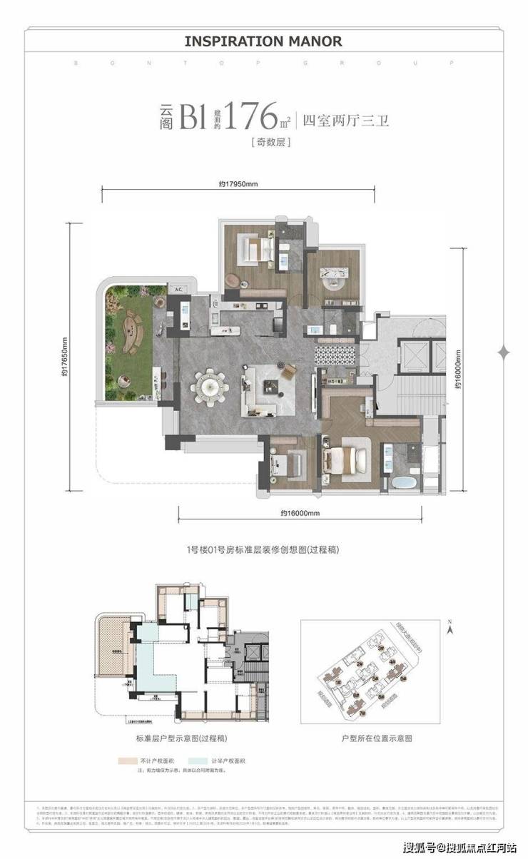 主力户型:建面约143-199㎡精装浮岛大平层
