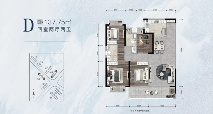 在售面积:建面约99.52-137.75㎡户型