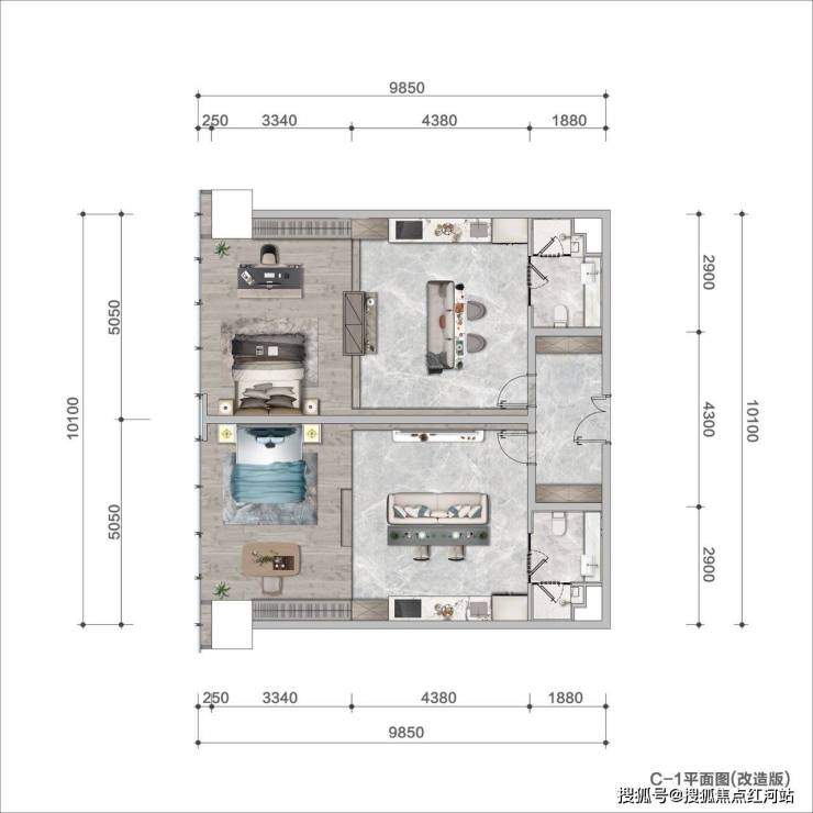 可改造方案:(B方案-二室二厅两卫)