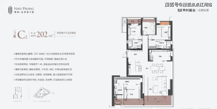 C2御境:建面约203㎡ 四房两厅三卫双套房