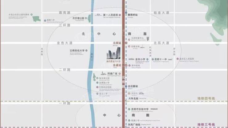 项目屹立盘龙区北京路金刀营,紧邻地铁2号线金星站、距离北辰站双地铁站仅200米邻近同德广场、北辰财富中心两大商圈与明通小学、金实小学等优质学校为邻近揽盘龙江、月牙潭、龟龙湖三大生态景观优享昆明市第一人民医院、云南省中西医结合医院