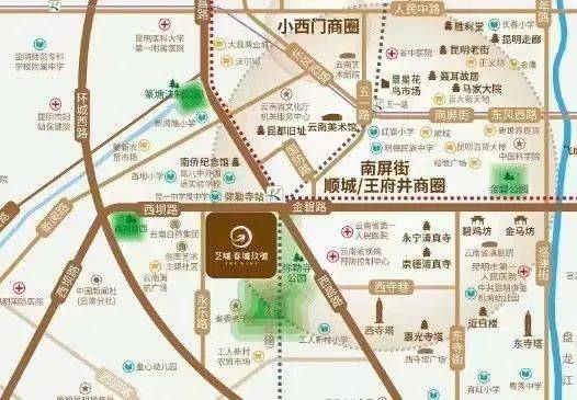 商业配套:项目800米内顺城购物中心、南屏街商圈。3公里范围内有小西门(万达广场、恒隆广场、南亚、大悦城),享有昆明最优渥的商业资源