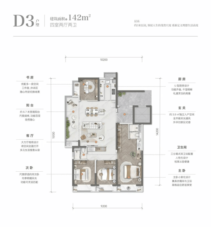 【项目亮点】板式住宅 外立面现代美学设计 归家双入户大堂 社区入户门庭 首层架空层-社区泛会所打造 海绵城市绿地设计 全龄段社区关怀系统 中央会客厅
