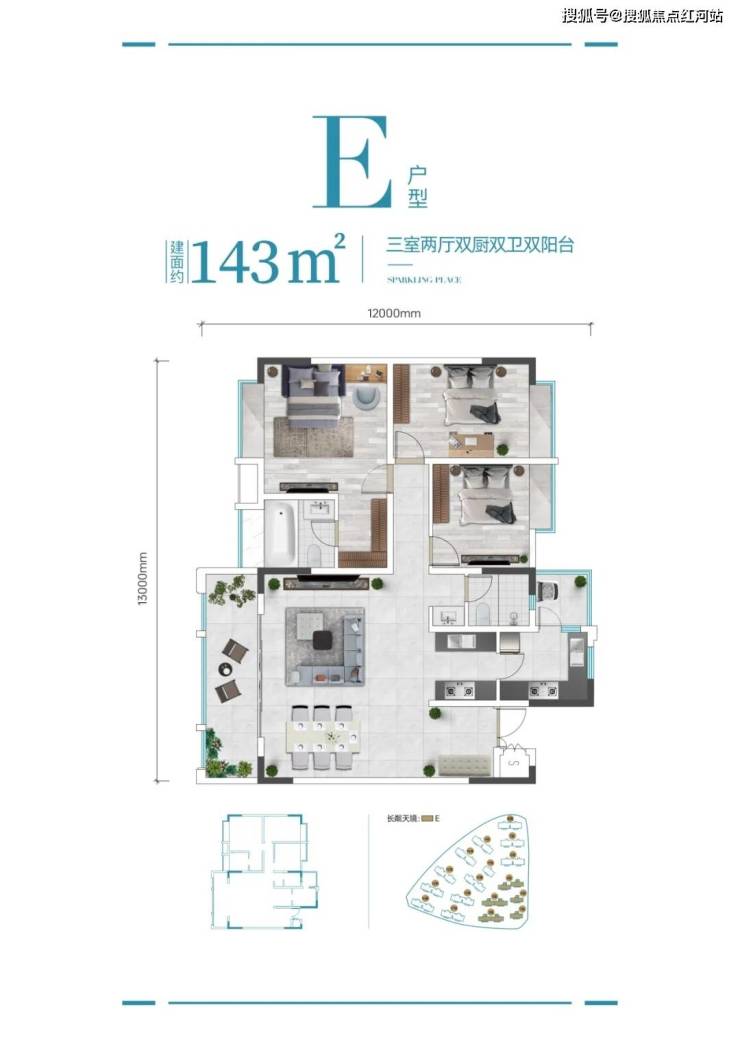 建面约143㎡功能三房