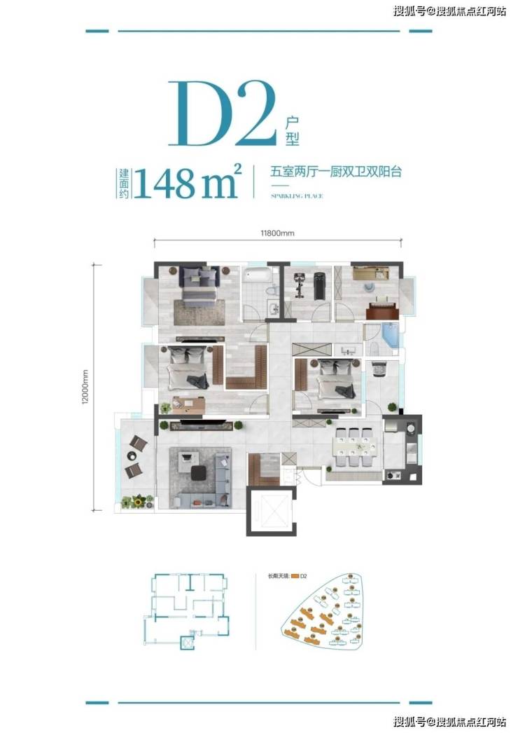 建面约148㎡宽境五房