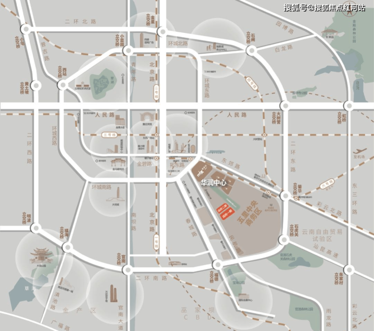 项目位于城市中心核心区昆明市一环内环城南路与东郊路交汇处,核心区占城市核心配套资源30%以上。