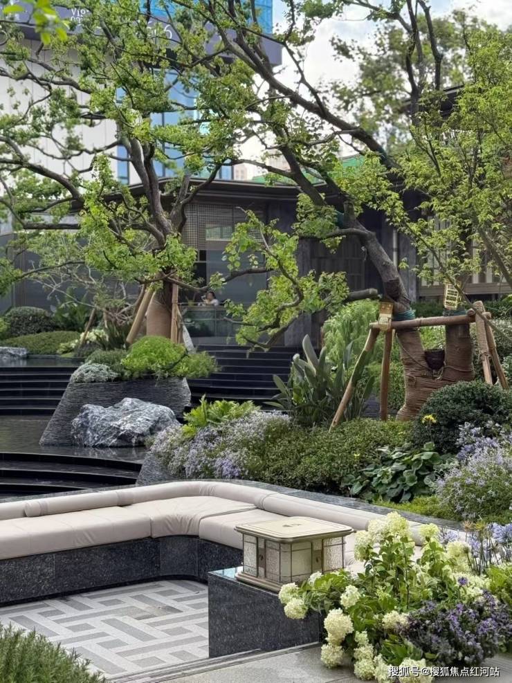 四季花木:甄选造型乌桕、朴树、红枫等名贵树种,实现四季有花可赏,四季常绿。