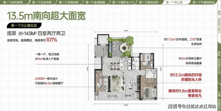 建面约135-213㎡全龄户型,精准适配不同家庭需求。140㎡、143㎡刚需改善户型,0公摊高得房率,空间灵活实用,满足三口之家至五口之家的居住需求;175㎡、213㎡高端改善户型,阔尺空间、环幕采光,私家庭院加持,兼具舒适性与尊崇感,承载全家岁月欢喜与生活仪式感。