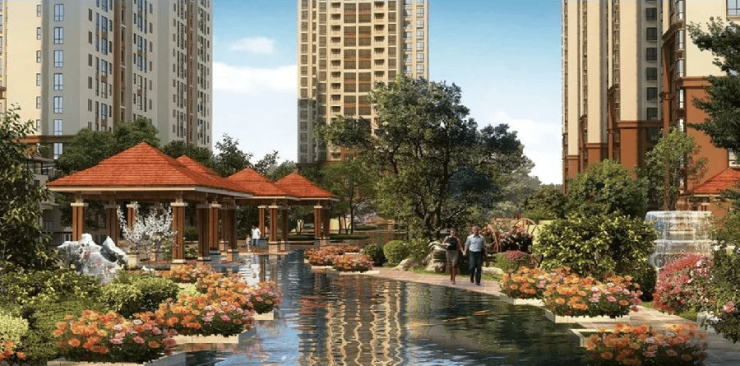 社区采用人车分流、商住分离设计保证居住静谧性和舒适度,景观为简欧园林设计,绿化率42%,项目背山面水的坡地优势,楼栋之间排布按照南北向、东西向地势形成的高差错落布局,在保证良好的采光和通风的同时,更让户型设计和视野合理舒适。