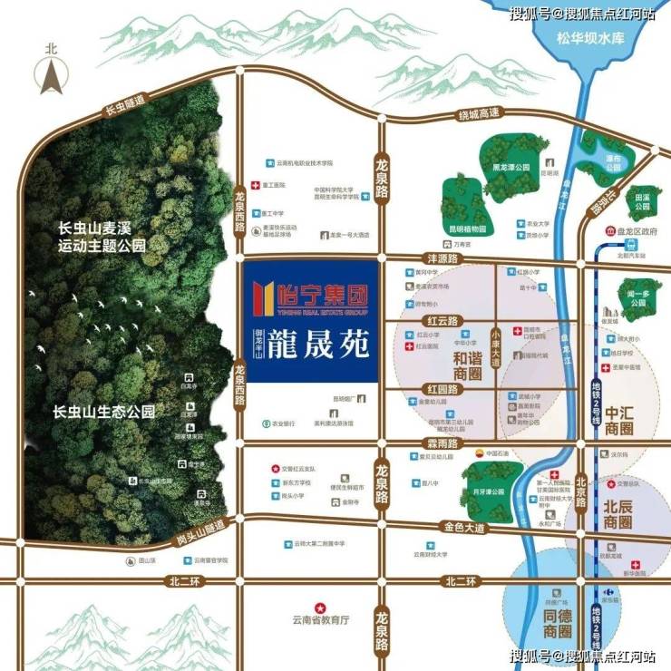 地处龙泉路与红云路交汇处,周边 9 路、79 路、115 路等多条公交途经小麦溪站;临近规划地铁 8 号线,自驾衔接二环北路、北京路,快速抵达和谐广场、北辰商圈。教育配套有盘龙小学(龙源校区)、社区幼儿园;医疗有社区医院、红云医院;楼下生鲜超市齐全,日常购物、就医、上学不用远走。