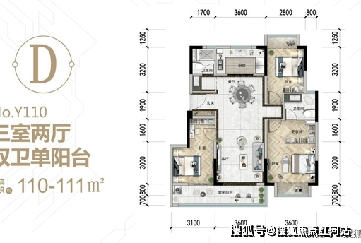 110㎡三房:双卫设计,双阳台,动线合理,适合刚需升级;