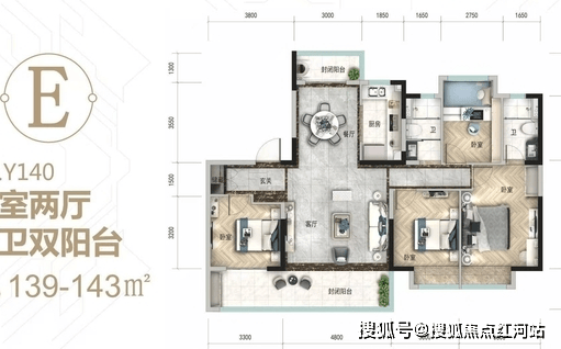 140㎡四房:4.8 米宽厅 + 8.1 米大阳台,四开间朝南,电梯独立入户,改善首选;