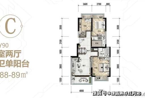 88㎡三房:紧凑实用,4 米客厅,南北通透,明厨明卫,主卧带飘窗,适合新婚或三口之家;
