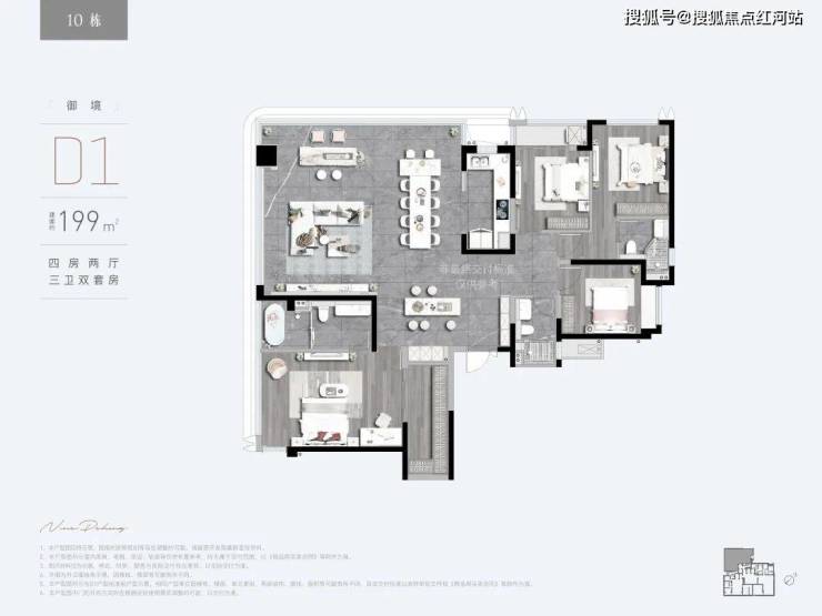 D1御境 建面约199㎡ 四房两厅三卫