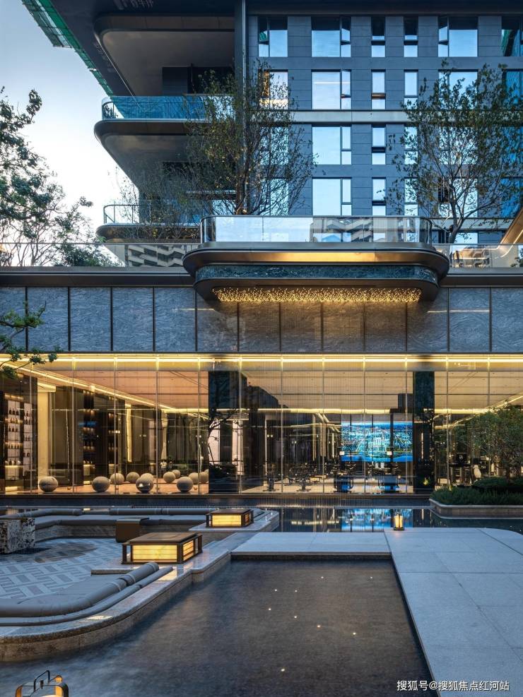 打造约50米奢阔门庭、9.2米挑高归家大门,库班绿、普拉达绿等世界奢石搭配香槟色不锈钢线条,营造漂浮云顶般梦幻质感,尽显圈层尊崇。社区内部匠筑约2.5万㎡高定度假生活艺境园林,甄选古桩乌桕、百年映山红、特级红果冬青等名贵木种,辅以意大利雪山蓝、安哥拉黑等全球奢石,复刻顶奢酒店度假场景。更打造星级礼序双大堂、地库星空顶光厅,每一步归家都充满仪式感。