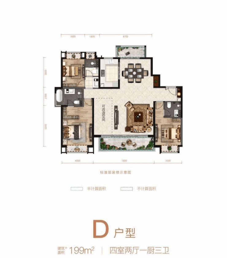 在售户型:140㎡-200㎡