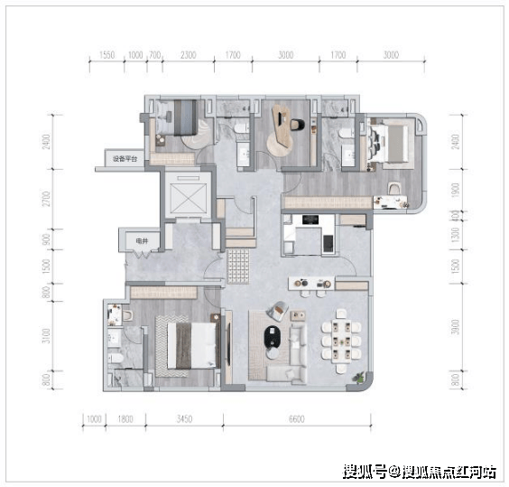 •270°至尊双主卧:双主卧套房皆配明卫、茶寮,阳光私疗愈系统恒常守护。