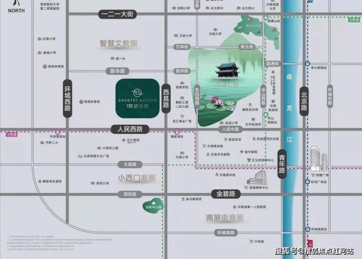 周边竞品多位于五华区城芯边缘,远离翠湖,无法享受湖景生态及深厚文化底蕴,且周边配套多为普通社区配套,缺乏高端商业及优质医疗资源;而本项目地处翠湖旁约800米,是昆明城芯稀缺的湖景高端大宅,环翠湖汇聚多个博物馆、名人故居,文化氛围浓厚,生态环境优越,是竞品无法复制的核心优势。交通上,300米可达双地铁口,1、3、5号线交汇,通勤便捷度远超竞品;教育上,小学划片春城小学大观校区、初中对口昆二中,1km内多所名校环绕,教育资源确定性及优质度远超竞品;商业上,3km内四大核心商圈林立,自身配备1.4万方商业,高端购物、休闲需求一站式满足,配套成熟度及高端性无可替代。