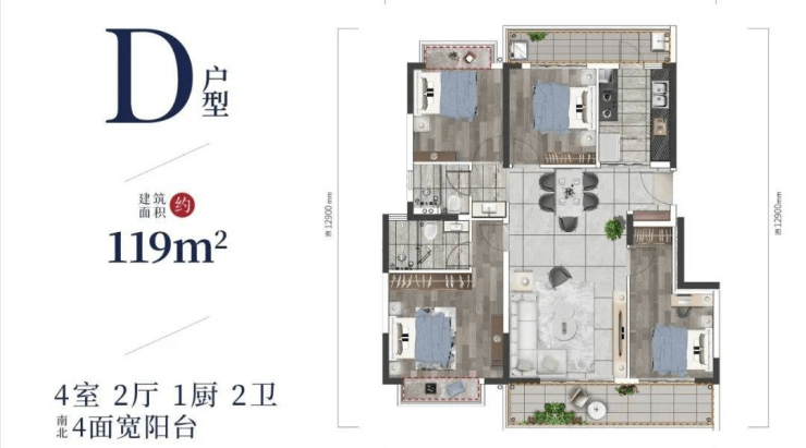 面积段:建面约88-119㎡户型