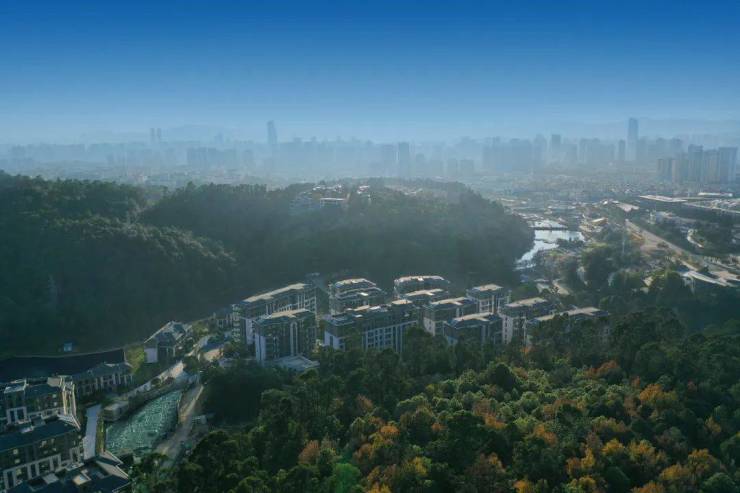世博生态城蓝湖邻里与世界园艺博览园、呼马山森林公园、金殿国家森林公园、云南野生动物园、园林植物园五大公园相邻,与山林自然、城市繁华区连为一体,80%的森林覆盖率,形成昆明主城无可复刻的生态栖居大境。