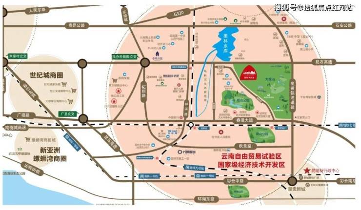 项目位于昆明经济技术开发区,果林湖畔。经开区是连接“呈贡新城——昆明主城——昆明新机场航空港”核心三角经济圈的黄金中心点。同时,经开区现阶段整体房价远低于城区,自贸区的建立也将极大的拉动整个经开区的发展,经开区是最具有升值空间和投资价值的区域。坐享新亚洲·体育城、螺丝湾等市级大配套,坐拥呈黄、广福、昆洛、航空港交通要塞,占据省、市级机关和航空港的“黄金三角点”区位。