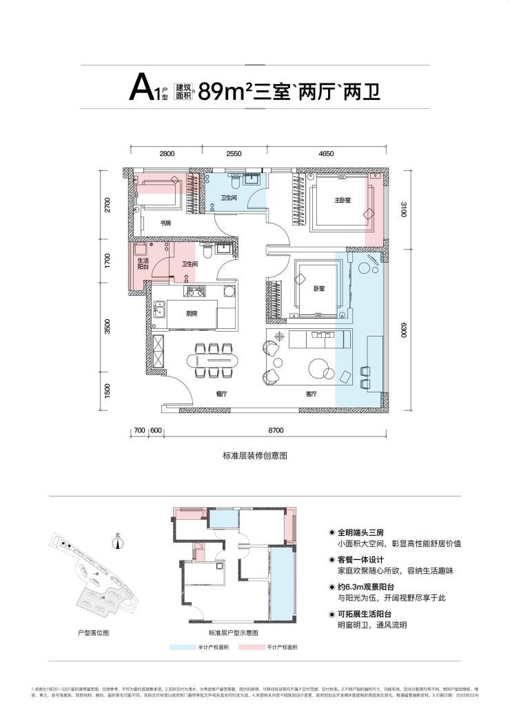 T6——89㎡ 全明端头三房,使用率约99.65%